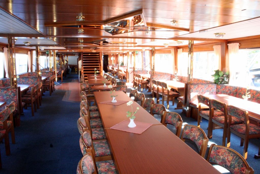 kein Bugstrahlruder, Hilfsmaschinen 2 x MWM 79 kw, 13 wasserdichte Schotten; 3-Deck-Schiff mit 293 Innenplätzen (141 Plätze im Eingangsdeck, 152 Plätze im Mitteldeck) und 250 Freiplätzen; Eingangsdeck ist mit Küche und Theke ausgestattet; Mitteldeck verfügt über Theke und Teeküche, Winterbetrieb möglich, Heizung vorhanden; Flüssiggasanlage;, Kücheneinrichtung mit Her Küberbusch, Heißwasserbad Küperbusch, Kippbratpfanne, Allgasherd Zanussi;, Fäkalientank 6 m³; Frischwassertank 4 m³; Treibstofftank 8 m³, nautische Ausrüstung mit Radar Swiss, Fixpunkt ohne Geländer des Sonnendecks 6,10 m